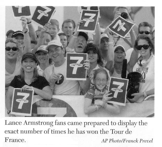 Cancer Survivors Cheer Lance in Paris, API Photo from Page 2 USA Today, 7/25/2005