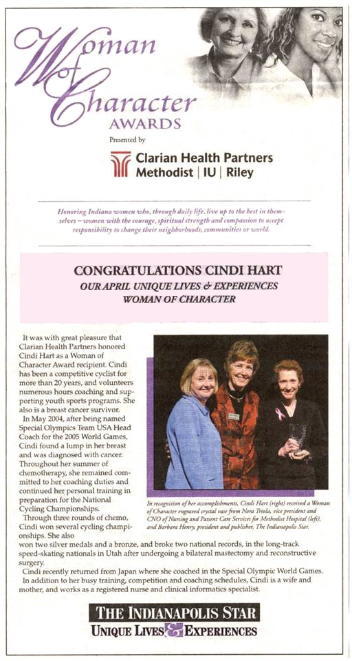Cindi Named Woman of Character in Indianapolis Star 4/24/2005