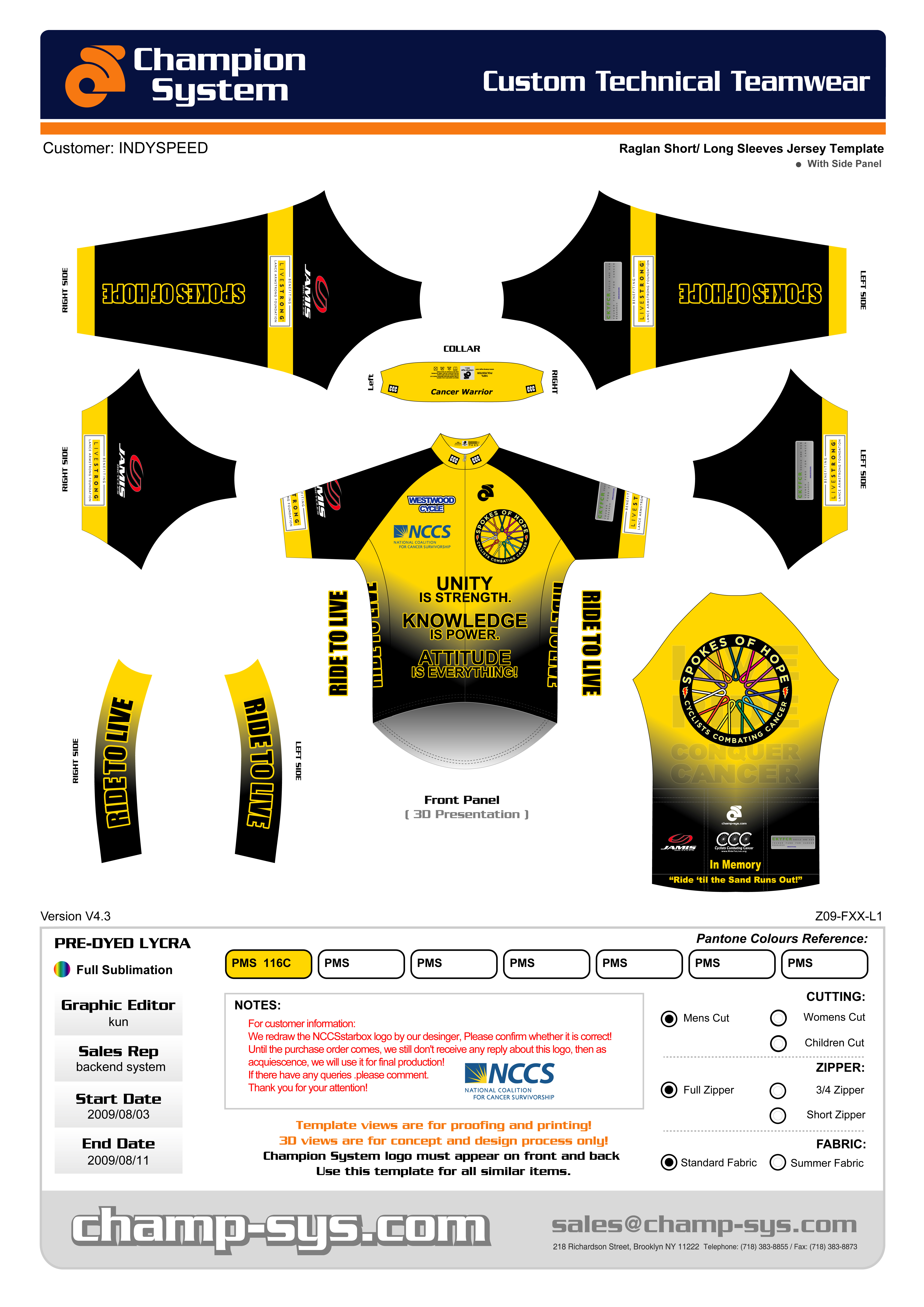 Listed below is the artwork for CCC clothing. The manufacturer is Pactimo, out of Colorado. The clothing does fit differently than past clothing orders from Verge and Garneau. Also listed below is a sizing chart from Pactimo. The clothing is more snug, so I wear 1 size larger (XL) in Pactimo than I do in Garneau & Verge (Large).